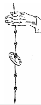 Ôîêóñíèê ïîêàçûâàåò çðèòåëÿì âåðåâêó, ê êîòîðîé ïîñðåäèíå ïðèâÿçàíî ÿðêîå ïëàñòìàññîâîå êîëüöî. Ïî îáåèì ñòîðîíàì íà ðàâíîì ðàññòîÿíèè çàâÿçàíî ïî äâà óçëà. Îí äåðæèò âåðåâêó çà êîíåö ëåâîé ðóêîé è âïëîòíóþ ïîäíîñèò åå ê çðèòåëÿì, äàâàÿ âîçìîæíîñòü ïîäðîáíî ðàññìîòðåòü. Ïðîäåìîíñòðèðîâàâ âñåì, ÷òî âåðåâêà ñàìàÿ îáûêíîâåííàÿ, îí íå òîðîïÿñü íà÷èíàåò íàêðó÷èâàòü åå ïðàâîé ðóêîé íà ÷åòûðå âûòÿíóòûõ ïàëüöà ëåâîé äî òåõ ïîð, ïîêà íå íàìîòàåò ïî÷òè ïîëíîñòüþ.