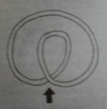 Áîëüøèì ïàëüöåì ëåâîé ðóêè íàòÿíèòå áîëüøóþ ïåòëþ òàê, ÷òîáû ìåíüøàÿ ïåòëÿ îêàçàëàñü ïîä íåé. Òåïåðü óêàçàòåëüíûé ïàëåö ïðàâîé ðóêè ïðîñóíüòå ñíèçó ââåðõ ÷åðåç ìåíüøóþ ïåòëþ è ïðîâåäèòå åãî ïîâåðõ ïðàâîé ñòîðîíû áîëüøîé ïåòëè âíèç ïîä ëåâóþ ñòîðîíó è ê âàøåìó íîñó. Ïðèæèìàÿ óêàçàòåëüíûé ïàëåö ïðàâîé ðóêè ê êîí÷èêó íîñà, îäíîâðåìåííî áîëüøèì ïàëüöåì ëåâîé ðóêè íàòÿíèòå áîëüøóþ ïåòëþ è âûïóñòèòå èç çóáîâ âåðåâêó.