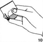 10. Вы обеспечиваете "исчезновение" монеты следующими движениями: держите пакетик так, чтобы открытая сторона была обращена вниз к основанию пальцев. Ослабьте нажим большого пальца правой руки, и монета выскользнет из бумаги в правую руку и будет находиться незамеченной в согнутых пальцах.