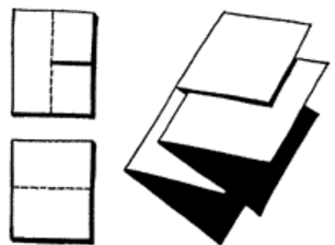 Áóìàæíûé ëèñòîê, êîòîðûé ñêëàäûâàåòñÿ âåðòèêàëüíî, â öåíòðå èìååò ãîðèçîíòàëüíûé ðàçðåç. Âñòàâëÿÿ ëèñòîê, ñëîæåííûé ãîðèçîíòàëüíî, â ëèñòîê, ñëîæåííûé âåðòèêàëüíî, ïðîïóñòèòå åãî ïîëîâèíó ÷åðåç ðàçðåç íàðóæó.