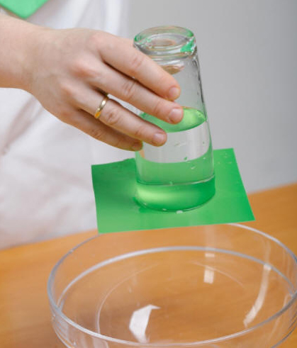 Âûðåçàåì êâàäðàò èç áóìàãè, êëàäåì åãî íà ñòàêàí è àêêóðàòíî ïåðåâîðà÷èâàåì. Áóìàãà ïðèëèïëà ê ñòàêàíó, êàê íàìàãíè÷åííàÿ, è âîäà íå âûëèâàåòñÿ. ×óäåñà!