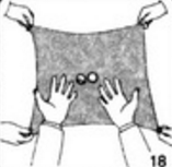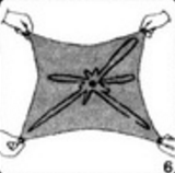 6. Предложите зрителям взяться за четыре угла платка. Платок они должны держать параллельно полу. Монета и кольцо расположены под платком.
