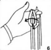3. Передавая веревки из правой руки в левую, вы должны сделать следующую серию движений. Когда вы будете их осуществлять, зритель слева, по вашей просьбе, наклонится перед вами, чтобы "проверить" вместе с другим зрителем стул. 4. Левой рукой возьмитесь за веревку В в точке приблизительно на 15 см ниже центра петли, и позвольте веревке А соскользнуть с указательного пальца правой руки на петлю, образованную веревкой В. 5. Правой рукой приподнимите основание петли веревки В и загните его поверх веревки А к точке X.
