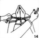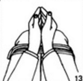 16. Под платком выверните кисти вправо. Вы обнаружите, что левая рука легко освободится от веревки. Выньте левую руку из-под платка, поправьте ею платок. Обычно это действие сопровождается дружным смехом в зале. Быстро заведите левую руку под платок и в веревки. Выверните кисти рук влево, чтобы веревки снова натянулись.
