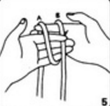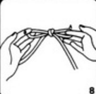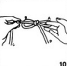 9. Áîëüøîé è óêàçàòåëüíûé ïàëåö ëåâîé ðóêè ïðîòÿíèòå ñêâîçü ëåâóþ ïåòëþ è çàõâàòèòå ëåâûé êîíåö âåðåâêè.