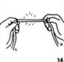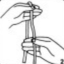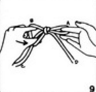 5. Çàõâàòèòå âåðåâêó êîí÷èêàìè óêàçàòåëüíîãî è ñðåäíåãî ïàëüöåâ ïðàâîé ðóêè. Îäíîâðåìåííî ñ ýòèì çàõâàòèòå âåðåâêó óêàçàòåëüíûì è ñðåäíèì ïàëüöàìè ëåâîé ðóêè.