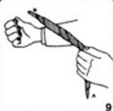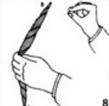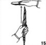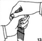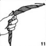 13. Затем, одним быстрым движением вниз правой руки сомните его между правой ладонью и левым кулаком.