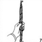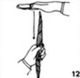 8. Сделайте вид, что вырвали у себя волос, и обвязывайте им кончик платка В. Держась за "свободный" конец невидимого волоска, медленно потяните его к себе. Большим пальцем левой руки оттяните одну сторону скрученного платка вниз, и он послушно поклонится. Примечание. На репетициях вы отработаете синхронность движений этой пантомимы.