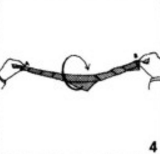 5. Удерживая скрученный в веревку платок двумя руками, заведите правую руку над левой, чтобы правый конец (точка В) находился точно над левым (точка А).