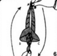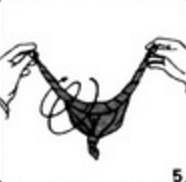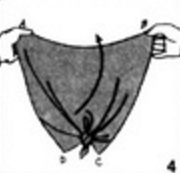 5. Закрутите платок "от себя", вращая узел вокруг платка, удерживаемого за углы А и В. Закрутить платок надо столь туго, насколько это возможно, пока материал не будет далее закручиваться.