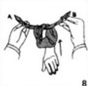 8. Взяв в каждую руку по концу, потяните за них. В результате фальшивый узел вокруг запястья "растает", и зрителям покажется, будто петля, образованная узлом, прошла сквозь руку. Доказательством этого является настоящий узел с петлей, оставшийся на платке.