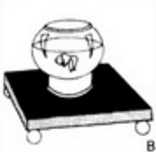 В.Предположим, что завершать фокус вы будете демонстрацией чаши с водой и золотой рыбкой, как было сказано выше. Найдите чашу, точно вставляющуюся в Потайную камеру. Поставьте чашу на подставку, как показано на рисунке. Наполните ее водой приблизительно до половины и запустите несколько золотых рыбок.