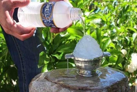 Âûíüòå áóòûëêó èç ìîðîçèëêè è äîñòàíüòå êóñî÷åê ëüäà. Ïîëîæèòå ëåä è íà÷íèòå íàëèâàòü íà íåãî âîäó - âîäà íà÷íåò ïðåâðàùàòüñÿ â ëåä ïðÿìî ó âàñ íà ãëàçàõ.