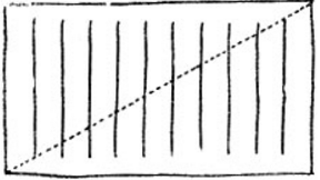 Íà÷åðòèì íà ïðÿìîóãîëüíîì ëèñòå áóìàãè äåñÿòü âåðòèêàëüíûõ ëèíèé îäèíàêîâîé äëèíû è ïðîâåäåì ïóíêòèðîì äèàãîíàëü: