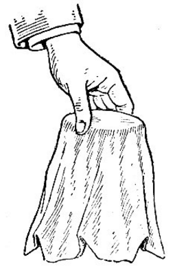 Платок должен совершенно закрывать банку. Он делается двойным, желательно темного тона. В середину вставляется кар тонный кружок диаметром чуть больше горла банки. После ее "исчезновения" платок вместе с кружочком можно легко смять и бросить на стол, что не вызовет никаких подозрений у зрите лей