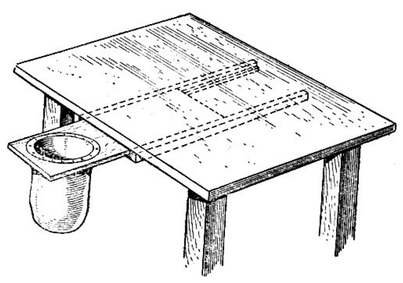 Обыкновенно фокусники-профессионалы делают в столе трап, то есть незаметный люк с дверкой, которую пружина держит в закрытом состоянии. Стоит только поставить банку с водой на дверку люка, как сосуд проваливается вниз, а дверка сейчас же опять встает на место.