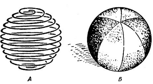 Складывающиеся мячи очень просты в изготовлении. На рис. 183, Б показан мяч в готовом виде, на рис. 183,А - его внутреннее устройство: пружина из стальной проволоки. Покрышка выкраивается из шести частей разноцветной материи. В сложен ном виде мяч занимает очень мало места. Диаметр мячей 6 см Все 36 мячей заряжают внутрь шкатулки на выпадающее дно, лежащее на закраинах. Кладут их по три штуки, начиная с правого конца шкатулки, под ее крышку, которую вы постепенно затем задвигаете. Располагайте мячи аккуратными рядами. Если теперь подвинуть ручку закраины Б, то под действием пружин мячей выпадающее дно упадет вниз, а мячи, расправившись, займут всю шкатулку.