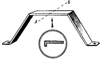 Помимо обручей, стенки крепятся еще между собой петлями с вынутой осью и вставленным на ее место проволочным и съемным штифтом (рис. 197, Г). Самая трудная часть в "тамбурине" - люк, который должен сам с помощью пружинных петель легко подниматься вверх, плотно подходя к стенке 6. На этой стенке крепится кусочек резины, чтобы люк при открывании не ударялся о стенку. 7. Два обруча, которыми затягивают бумагу на "тамбурине", сделаны из никелированного металла. Каждый обруч разборный и состоит из двух половин. Половина обруча показана на рис. 198. Обручи делаются из углового металла, ширина собственно обруча 40 мм, загиба-закраины 10 мм. Размеры сторон обруча мы не приводим, так как их узнают опытным путем - делают по готовому "тамбурину" с расчетом, чтобы они легко находили на "тамбурин" и плотно затягивали положенную на него бумагу.