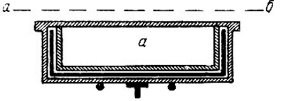 В верхней доске стола (см. рис. 190, А) сделан вырез, который дает возможность ассистентке опускаться в неподвижный внутренний ящик 2. На рис. 191 показан стол в разрезе, сделанном по линии аб. Если ассистентка будет сидеть во внутреннем ящике стола, то второй ящик - выдвижной - в это время может свободно выдвигаться, так как его дно и две стенки будут скользить между дном внутреннего ящика и дном стола. Снизу стола в центре приделывается приваренный к пластинке (с отверстиями для крепления) штырь диаметром, равным диаметру упорного шарикоподшипника, приделанного в центре разборного столика. Снизу стола прикрепляются также четыре шариковых вращающихся ролика (как у ножек рояля). Ролики, скользя по рельсу-кругу, не позволяют шкафику отклоняться в стороны, и, кроме того, они служат для проводки тока внутрь иллюзиона к лампочке, находящейся на потолке шкафика перед стойкой.