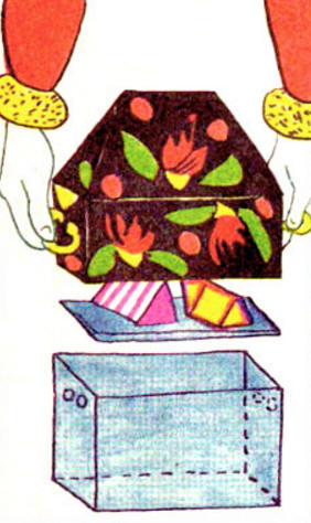 Ïîêàçûâàÿ çðèòåëÿì ïðîçðà÷íóþ êîðîáêó, ôîêóñíèê ïîäíèìàåò êðûøêó, à âìåñòå ñ íåé è âñòàâêó ñ ïîäàðêàìè. Ïîäíèìàÿ êðûøêó âî âòîðîé ðàç, îí óñïåâàåò âûäâèíóòü ðó÷êè-êðåïëåíèÿ, è âñòàâêà ñîñêàëüçûâàåò â ëàðåö.