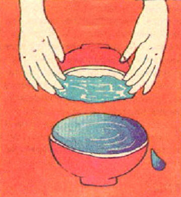 Ïèàëó ñ êîíôåòòè ñòàâèòå íà ñòîë è ñíîâà ïîêàçûâàåòå çðèòåëÿì ïóñòóþ ïèàëó. Äàëåå íàêðûâàåòå åþ ïèàëó ñ êîíôåòòè è ñðàçó ñíèìàåòå. Âñå âèäÿò: íà ñòîëå ñòîèò ïèàëà, äî êðàåâ... íàïîëíåííàÿ âîäîé. ×òîáû ó çðèòåëåé íå áûëî ñîìíåíèé, ïðîëåéòå âîäó íà ïîë.