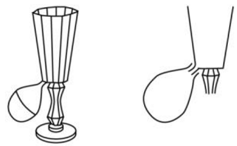 Ðþìêà äîëæíà áûòü ãðàíåíîé è òîëñòîé, ÷òîáû îíà ïðè êàæóùåéñÿ áîëüøîé âåëè÷èíå â äåéñòâèòåëüíîñòè âìåùàëà â ñåáÿ íåìíîãî. Ðþìêó ñ áàëëîí÷èêîì íóæíî áðàòü â ðóêó òàê, ÷òîáû ïðè ëþáûõ ïîëîæåíèÿõ áàëëîí÷èê íå áûë âèäåí çðèòåëÿì: îí ñêðûâàåòñÿ â ëàäîíè. Íà ñòîëèêå ýòà ðþìêà ñòàâèòñÿ òàê, ÷òîáû áàëëîí÷èê íå áûë âèäåí - îí çàñëîíÿåòñÿ áóòûëêîé.