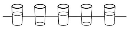Ïÿòü ñòàêàíîâ ñòîÿò â ðÿä â òàêîì ïîðÿäêå: ñ âîäîé, ïóñòîé, ñ âîäîé, ïóñòîé, ñ âîäîé.