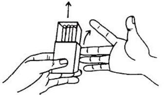 Äåðæèòå çàêðûòûé ñïè÷å÷íûé êîðîáîê ëåâîé ðóêîé â âåðòèêàëüíîì ïîëîæåíèè. Ïðèáëèçüòå ê íåìó ïðàâóþ ðàñêðûòóþ ëàäîíü è íå ñïåøà ïîäíèìàéòå óêàçàòåëüíûé ïàëåö ââåðõ. Ïîâèíóÿñü äâèæåíèþ óêàçàòåëüíîãî ïàëüöà, ÿùè÷åê ñî ñïè÷êàìè ñòàíåò âûäâèãàòüñÿ èç ôóòëÿðà.