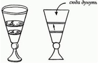 Ó âàñ â ðóêàõ - ñòåêëÿííàÿ ðþìêà, èìåþùàÿ ôîðìó ïðàâèëüíîãî êîíóñà. Íà ãëàçàõ ó çðèòåëåé ïîëîæèòå â íåå äâå ìîíåòû - ñíà÷àëà ìàëåíüêóþ, à ïîòîì áîëüøóþ. Îáðàòèòåñü ê çðèòåëÿì ñ ïðåäëîæåíèåì: äîñòàòü ìàëåíüêóþ ìîíåòó èç ðþìêè, íå îïðîêèäûâàÿ åå è íå ïðèòðàãèâàÿñü ðóêàìè ê áîëüøîé.